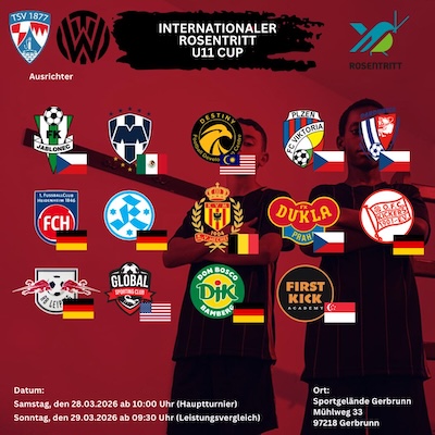 Der TV Würzburg-Kitzingen und der TSV Gerbrunn veranstalten gemeinsam den Internationalen U11 TEAM_ROSENTRITT CUP mit einem vielfältigen Teilnehmerfeld.mehr…